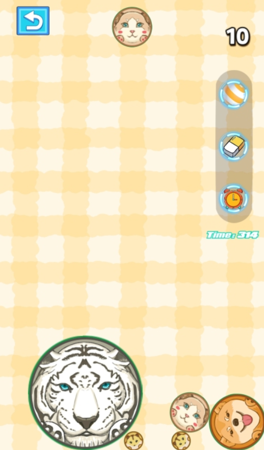 这是一款画风可爱的动物球球合成游戏。游戏操作很简单,玩家需要操控落下的球球和相同样式的球球合成在一起,两个相同的球球合成后会升级变化为更大的另一个样式的球球,需要玩家操控初始球球不断合成不断升级,需要注意的是随着球球合成级别越高,合成后的球球体积也会越大,占据的空间也有越大,容易把级别低的小球挡住,所以合成球的位置就很重要,有些玩家会通过规划不同级别球球的位置达到合成连击,这样挡住小球的概率就会低很多,值得借鉴参考。