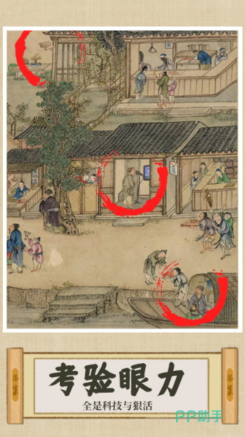 这是一款融合古代场景与现代元素的创意解谜游戏,结合了猜图与找茬双重玩法。每一关都描绘出精致的古风画面,如庭院楼阁、市井街巷,但在其中巧妙植入篮球、奶茶、小提琴等现代物品。玩家需凭借对时代特征的理解,发现古今混搭的违和之处。随着关卡推进,难度逐步上升,部分线索需要移动物体才能显现,极大考验观察力与逻辑思维能力。