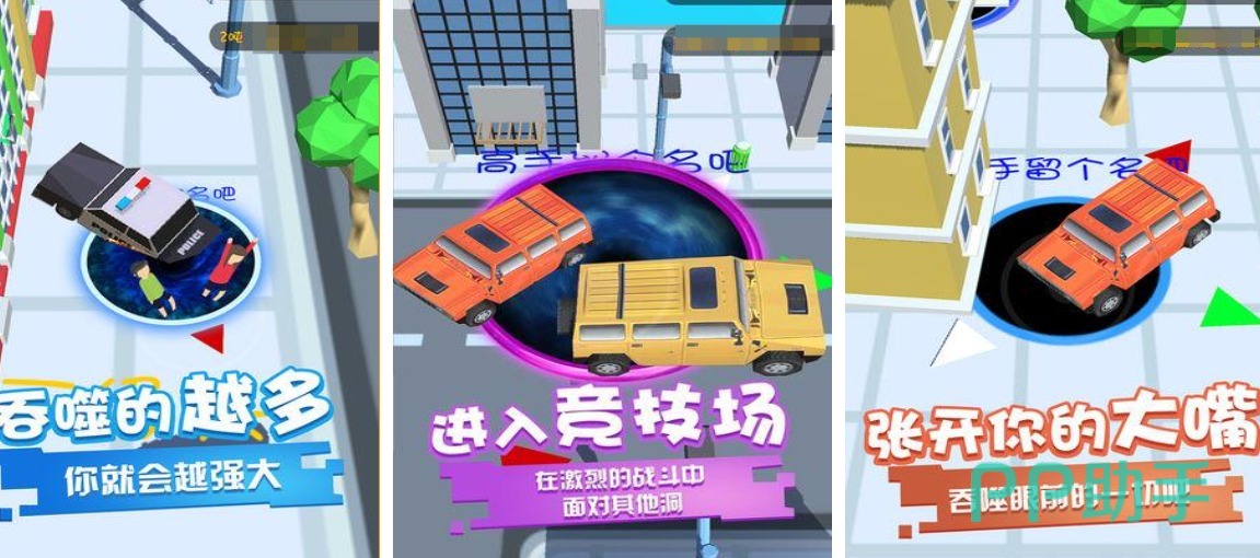 黑洞吞噬也是不少吞噬手游爱好者喜欢玩的休闲游戏,玩家将化身黑洞在各种地图上尝试吞噬道具,吃掉的物品多寡会影响到黑洞的成长属性,长成超大的黑洞甚至能一口吃掉高楼大厦,还设有六人联机的竞技场让大家一起吞噬进化,黑洞的皮肤也很美观令这款吞噬手游观赏性拉满,只要你喜欢那种无限制吞噬类手游就应该安装本作。