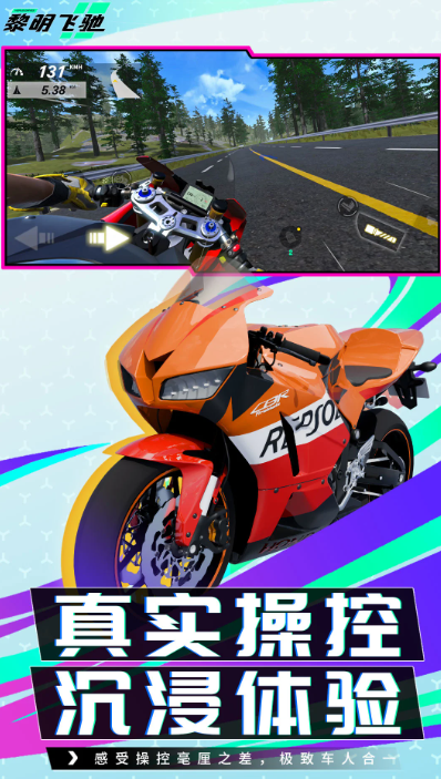 它把摩托车和竞速玩法结合起来,用特别的3D画面,让玩家像真的在赛车跑道上一样。游戏里有上百种摩托车,每一款都是照着现实中的样子做的,看起来很真实。还有多种场景可以选,我们能以第一视角开着自己选的摩托车在这些场景里飞驰,还能听到机车的轰鸣声。游戏有好几种操控方式,驾驶时能做加速和刹车等动作,能明显感受到心跳加速的刺激感。