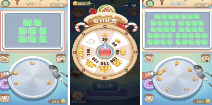 英语拼拼乐会设定一个美食世界,在这里会有各种果酱字母,玩家需要把这些字母移动到上方的空位上,这些空位都会有不同的字母限制,要在关卡挑战中,根据给出的这些字母按照正确的顺序组合,字组合单词之后,这些字母就会消失,另外还可以通过连线的方式,把这些字母组合成单词或者短句,玩家可以用轻松的方式掌握更多英语词汇。