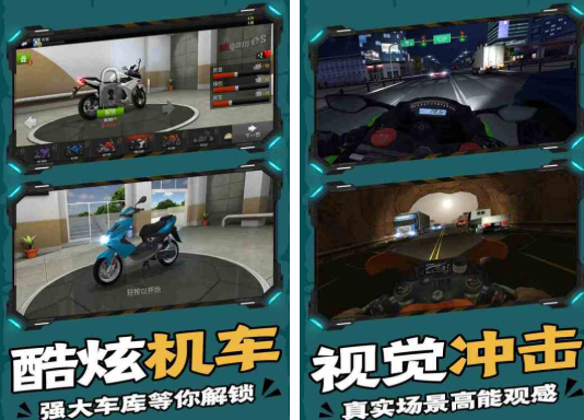 是一款专门给摩托车竞速迷所推出的游戏。玩家可以挑选来自于全世界各地的炫酷摩托,在生涯模式中可以比拼速度,可以闯关卡,然后往顶尖车手的目标冲去。物理引擎还是很真实的,无论是碰撞的手感还是加速的手感,都像是真骑摩托一样。另外还可以和玩家实时联机竞速内置社区还可以分享改装的经验。