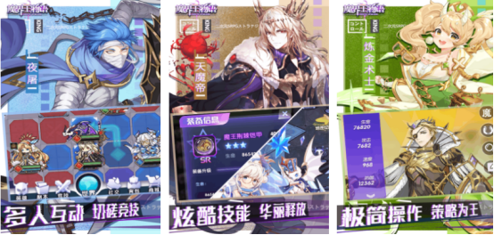竖屏展现形式,从整体的画面上来看,采用二次元的风格,却营造出了精彩无比的冒险故事剧情,在每场战争中,都可释放出炫酷的技能特效,激起心中的热血激情,还有各种性格迥异的英雄角色,将会让大家成功走进魔界的世界里,开启全新的篇章。支持多人互动,相互切磋境界,每次在战斗时都能将炫酷技能华丽释放。