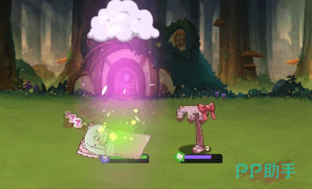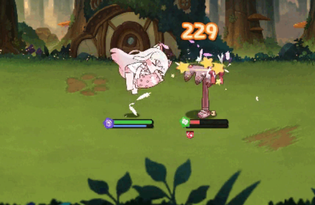 她的低阶技能“软乎乎”让她盖上被子进入睡眠状态,按最大生命值比例恢复自身血量,并在恢复期间免疫所有异常状态,极大提升生存能力。而高级技能“妖精特产饲料”则让她吞食特制饲料,短时间内巨大化,持续回复生命,并在落地时释放冲击波,对周围敌人造成范围性物理伤害,同时根据所造成伤害的一部分比例恢复自身血量。