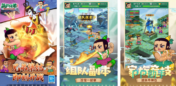 葫芦兄弟:七子降妖一打开就满是童年回忆,画面用了中国风手绘风格,蛇精的洞府阴森森的,迷雾森林里藏着各种妖怪,玩的时候要收集葫芦娃,组成队伍去降妖,每个葫芦娃的技能都不一样,大娃能用力气砸向敌人,造成大范围伤害,二娃能用千里眼找到敌人的弱点,攻击更精准,三娃的铜头铁臂特别厉害,能挡住敌人的攻击保护队友。
