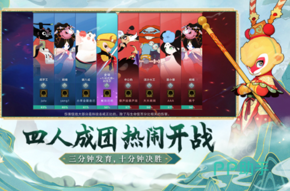 闹闹天宫的画面特别有国风韵味,水墨风格的天宫云雾缭绕,游戏主打团队竞技,核心玩法是抢桃子,玩家操控神话角色组队,在天宫地图里找桃子,收集的桃子越多越好,同时还要阻止对方队伍抢桃子,规定时间到了桃子多的队伍赢,玩的时候要讲究团队配合,比如让坦克角色在前面挡伤害,输出角色在后面抢桃子,辅助角色帮忙治疗,单局时间不长节奏很快。