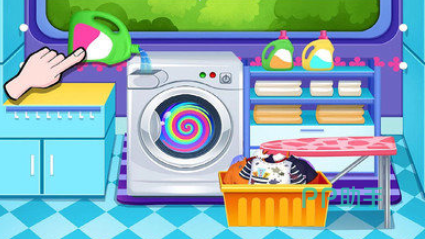 大头儿子做家务把家务变成了有趣的小游戏,画面里的家特别温馨,玩家要操控大头儿子一步步把家里收拾干净,整理客厅的时候用手指点一下玩具,大头儿子就会把玩具抱起来,放进对应的收纳箱里,积木放红色箱子,玩偶放蓝色箱子,放对了会有可爱的动画效果。