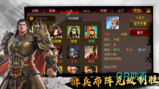 加入三国历史故事,你将成为一方诸侯的休闲游戏。想要凭借着自己的能力,在超大的战场环境当中,与敌人进行较量,必须要有超多的精兵强将,凭借着策略以及各种百变的阵法,在每次战局当中都能取胜。除了在玩法以及画面上,给大家带来经典又怀旧的设计,在很多的地方都进行了升级,掌握排兵布阵的方法以后,有助于在对抗当中战胜敌人。