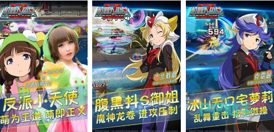 是根据日本经典动画所改编里面的老牌机甲摇身一变都成为了萌妹子机器人。是一个经典的横版动作格斗可以左边点击屏幕完成移动,右边可以释放普通攻击。三个角色也可以更换着使用,三个主角的性格比较鲜明,有腹黑的大姐姐,有傲娇的宅女,还有元气冒失女。等到援护槽满了之后,还可以让小伙伴帮助自己主打的一个就是无限连击,这种爽快感还是很有趣味性的。