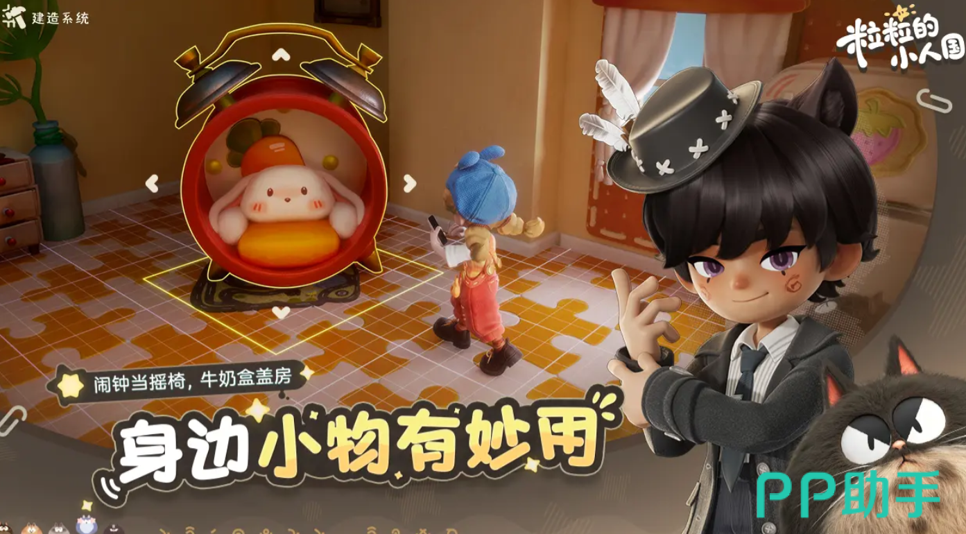 在这个被放大的卧室世界里,日常用品变成了巨大设施——闹钟可以变成摇椅,空牛奶盒能作为建筑原料,每一件小物件都有其独特的用途。玩家将以极小的体型穿梭于抽屉、书桌与地板缝隙之间,重新认识熟悉又陌生的生活空间。