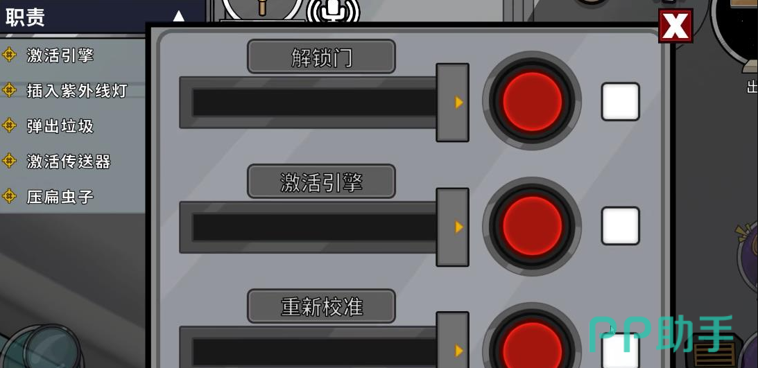 在学习如何接电线之前,先了解发动机区域的任务机制。当鸭子触发引擎破坏后,鹅阵营需立即前往发动机房处理故障。具体操作为:先将左侧拉杆拉下,等待界面右上角指示灯转为绿色后,再将拉杆复位。若未能在限定时间内完成校准,系统判定鸭子直接获胜。此外,鸭子在保安室完成任务后会触发传送破坏,但该破坏无明显提示,容易被忽略。