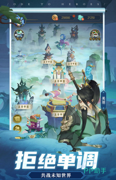 类型属于玄幻风格,主要玩法是收集卡牌和放置升级,主线故事围绕盘古开天辟地后的世界展开,进入游戏后,玩家会成为天命之人,需要召集来自人妖佛道的厉害角色。像哪吒和孙悟空这些大家熟悉的人物,在游戏里都有对应的角色设定,还分属不同的阵营。游戏里的场景地图也很大,一共有十五个风格不同的区域,每个区域里都有需要应对的挑战,剧情内容很充足。
