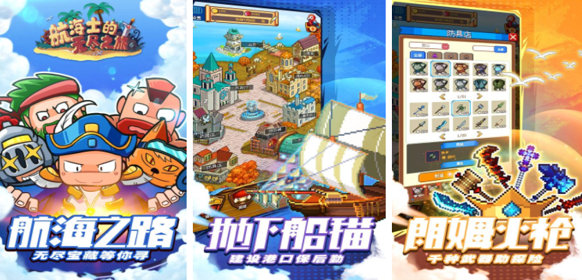 对于航海感兴趣的玩家,可以尝试一下航海士的无尽之旅,里面会设定一个像素世界,玩家需要带领这些卡通角色,驾驶船只开启远洋的航线,在这个过程中会遇到大量的海盗,需要利用不同的武器装备和这些海盗战斗,玩在野区的游戏里修建各类港口,这样才能有助于各个国家之间进行贸易,游戏里的设定非常丰富,能让玩家感受到真实的航海体验。