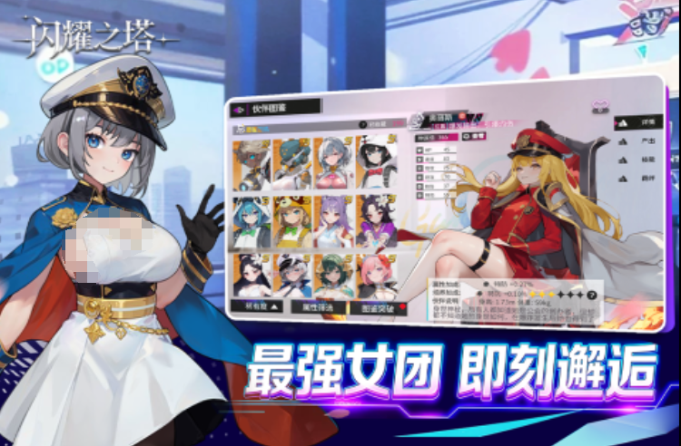 对于很多玩家来说,最喜欢的应该就是二次元类型的游戏,闪耀之塔就设定了一个卡通二次元世界,玩家可以和性格各异的少女,一起在这个大世界开启冒险,在这个都市场景里会有大量的异象,需要借助科技和这些少女们的能力,组成一支超强的战队对抗这些破坏者,在冒险的过程中,能选择大量的少女和自己一起结伴同行,每个少女都会有不同的性格,外观,等进入到游戏之后,玩家就可以带领这些最强女团角色开启战斗。