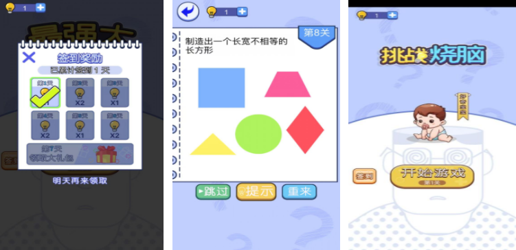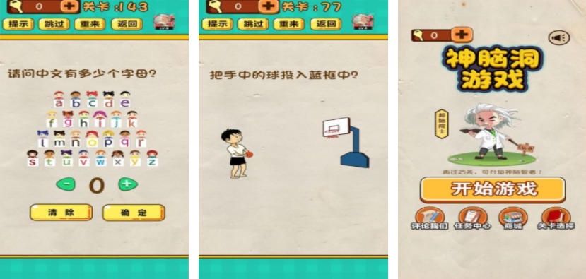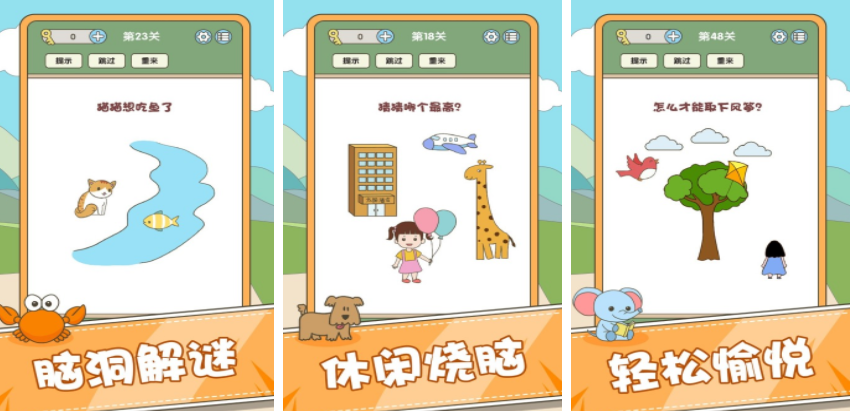 现在的游戏不只能让玩家放松,同时还能得到一些特定方向的锻炼,下面的游戏都会用卡通画面呈现出一个场景,玩家需要在这个场景里不断动脑,才能找到最终的答案,脑洞大开的闯关游戏会在下面分享,每个游戏的设定都会不同,接下来会进行分享和介绍。