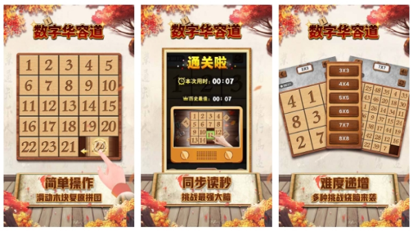 此游戏为大家提供着其乐无穷的数字益智解谜挑战,由纵横交错的格子组成的棋盘中,会预留一个空格,以4乘4的棋盘为例,纵横交错的棋盘由1到15这些数字随机分布组成,各位可以通过滑动数字方块,促使杂乱无章的数字按照1到15的顺序,从左右有序排列。《数字华容道》的玩法简单,简单移动即可完成操作,却充满了逻辑思维挑战。