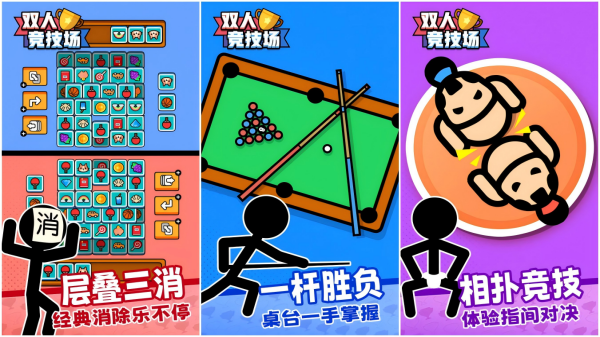 可以展开双人同屏竞技对战的小游戏《双人竞技场》里,收录了超过几十种充满创意的趣味小游戏,你可以和对象在此挑战赛车竞速、坦克对战等。这些游戏的娱乐方式并不复杂,以休闲益智为主,令各位可以轻松上手快乐玩耍。整体卡通明亮的色彩场景,也营造出了轻松欢快的游戏氛围,供家人们沉浸其中娱乐玩耍。