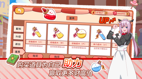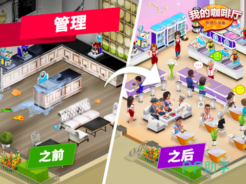 在这里,你将成功打造一家自己的梦幻咖啡店。从菜单的定制到店内饰品的装修,甚至员工的招聘培训,都由你亲自完成。在第三视角下,看着自己的小店被经营的越来越好,莫名的自豪感油然而生。爱情故事剧情的加入,让整个游戏也变得甜甜的。随着不断满足顾客的需要,以及更多店内饰品的解锁,高效提升店铺知名度。