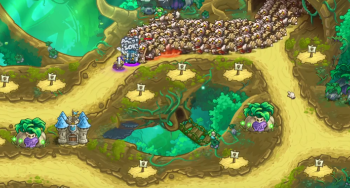 还有一个难打boss是野兽之王,野兽之王相对来说是机制比较多的一个boss,因为它的血量数值是非常高的,而且同时伴随的就是技能伤害也很高,而且它在技能上面都是有一定组合效果的,它进行攻击的时候还会不断的跳跃,跳跃的距离还比较远,所以大家想要阻挡它的话,这里选择的防御塔可以用一些树林使者以及两门输出类型的塔,这样就可以阻挡他的前进速度,那么这里输出上面还可以配合一下暗影弓箭手这类远距离的输出,在一开始的时候就达到足够的压制效果,这样大家才可以得到足够的防御时间,如果是英雄搭配的话,大家要上的是维斯伯和尼鲁。