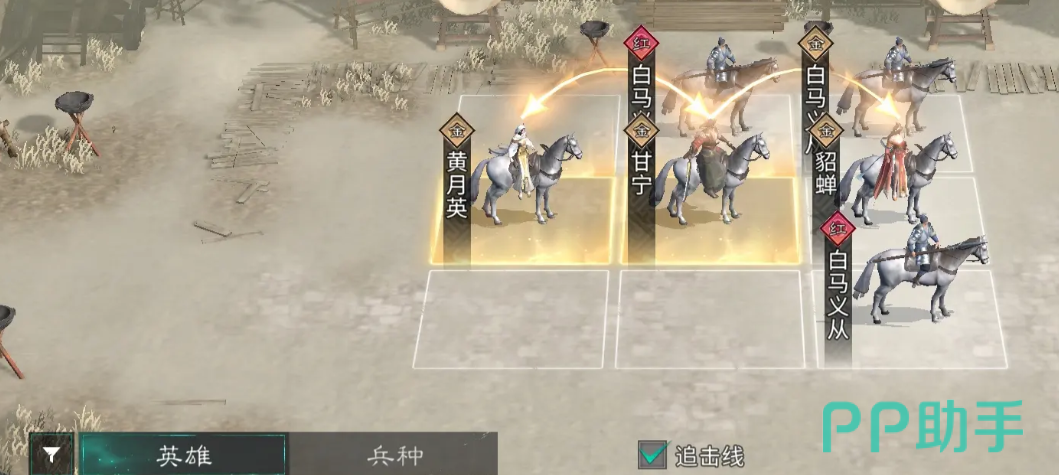 当某位武将成功触发追击时,即可在队友回合结束后获得一次独立行动机会,这是提升整体作战能力的重要手段。在布阵界面中,每位达到绿色品质及以上的武将身后都会显示一个小箭头,并附带一个标有“追”字的蓝色标识,表示其具备激活追击的能力。例如,若将吕布部署在貂蝉后方并进入其追击范围,则在貂蝉完成回合后,吕布将立即获得一次额外行动权,相当于继承了貂蝉的行动延续。