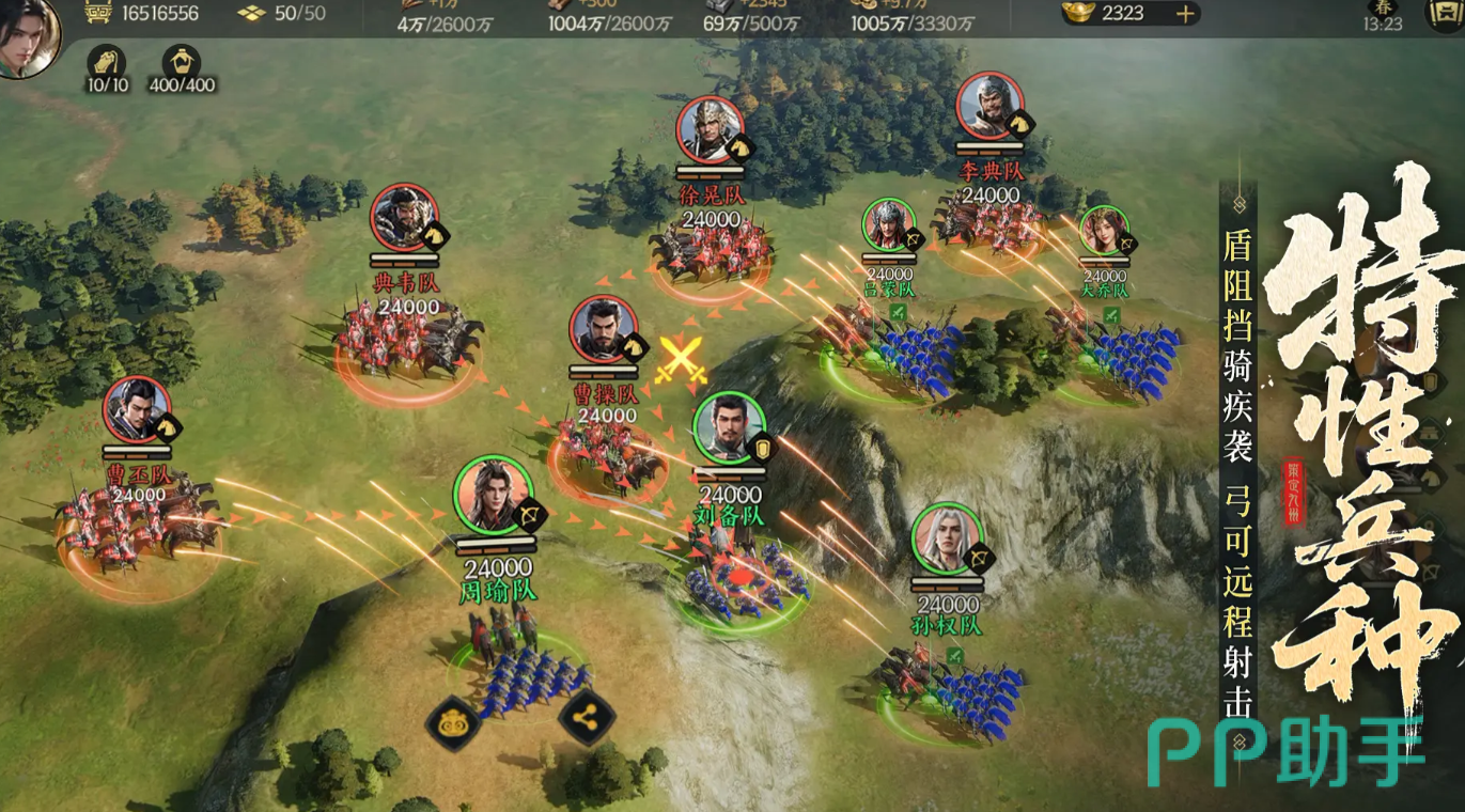 游戏中设有三大基础兵种:弓兵、骑兵与盾兵。弓兵擅长远程输出,尤其在高地具有射程和视野双重优势;盾兵具备强大防御能力,可用于封锁关键通道,阻挡敌方突进;骑兵则拥有出色的机动性,既可执行侧翼包抄,也能实施伏击突袭,打乱对手节奏。
