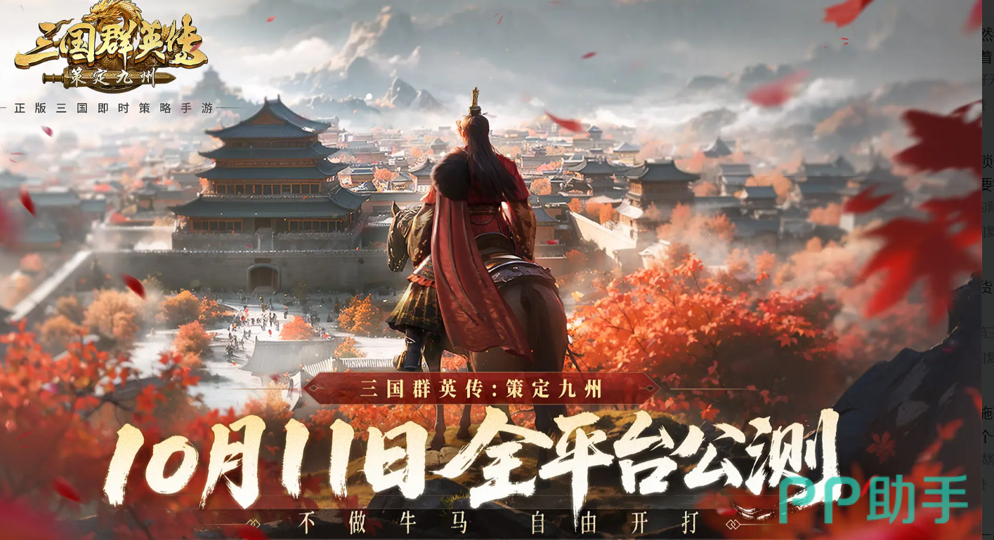 《三国群英传:策定九州》已于2025年10月11日正式开启全平台公测,玩家可通过官方渠道获取安装包,立即投身于恢弘的三国战场之中。