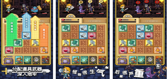 国家缺少粮食,玩家需要到地牢去寻找资源,但地牢中不断的出现冒险怪物,会一直攻击国家,所以一边就需要寻找食物,一边还需要保护家园。要想将这些怪物消灭,就需要靠卡牌和武器的组合。亮点就在于家园防守和资源的获取玩法要比单纯性地牢探险更有目标性。卡牌加武器的战斗组合是比较灵活的,就算新手也可以迅速上手。