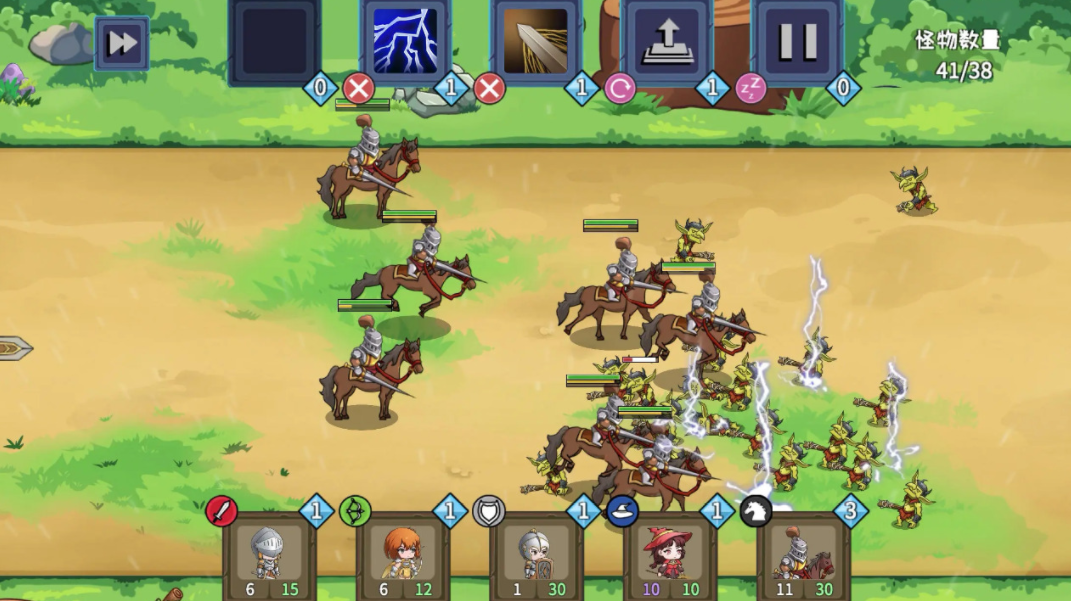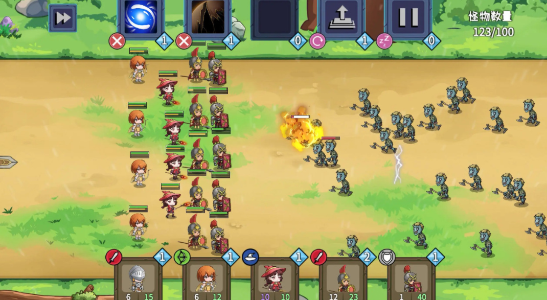 本作巧妙地将卡牌策略与塔防机制相结合,所有可操控单位和法术均以卡牌形式呈现。在战斗开始前,玩家需从已解锁的卡组中挑选合适的士兵组合,部署在战场上。一旦战斗开启,部队会自动进行攻防行动,无需持续手动操作,极大地提升了战斗流畅度。关键时刻,点击释放法术卡牌,可在战局中扭转形势,例如造成范围伤害、增强防御或提升攻击速度等。