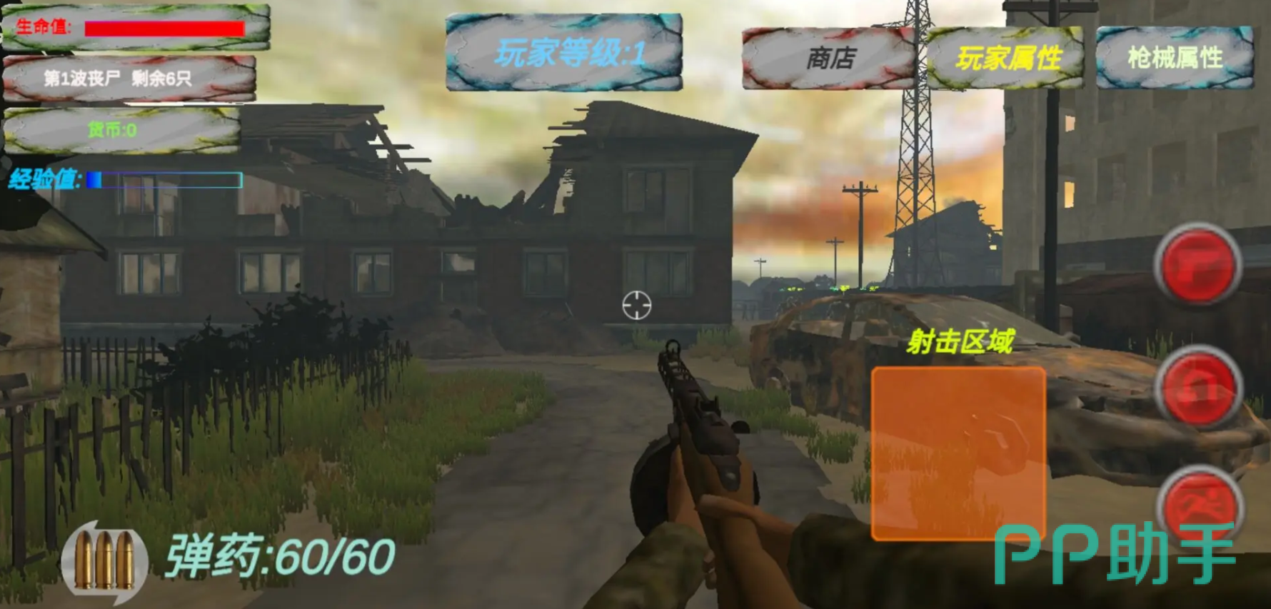 这款游戏的玩法很简单,就是需要玩家想办法扛过一个又一个不同的僵尸设定。游戏中有四种武器,从弓箭到枪械一应俱全,玩家需要谨记的是必须攻击僵尸的头部才有效,每一关的僵尸都不一样,有普通僵尸、畸形僵尸、巨型僵尸等,激发僵尸即可获得奖励金币购买升级,还能通过增加技能点提升自己的技能,僵尸病毒还会随着时间推移而变异,所以玩家一定要先下手为强。