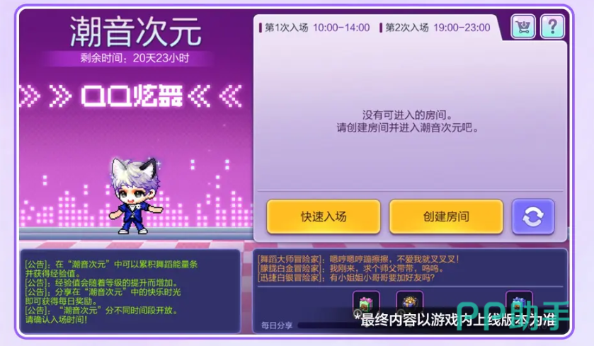 除此之外,全新趣味玩法“潮音次元”也将限时开放,每日上午10点至下午2点、晚上7点至11点均可进入。在这个充满节奏感的空间中,玩家可以自由跳舞、互动交流并积累能量值。当能量条满后即可领取经验奖励;若与NPC Cici老师共舞,更有机会获得其他玩家的推荐点赞。分享游戏截图达到指定次数后,还可额外领取纪念性奖励。
