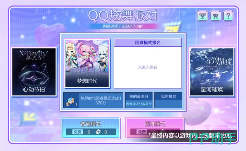 备受期待的“QQ炫舞派对”活动也将同步登场,时间为10月22日至11月12日。该玩法围绕QQ炫舞三首经典曲目设计,提供普通与困难两种难度供玩家挑战。其中,普通模式每日可参与两次,困难模式则开放十次挑战机会。成功通关即可领取当日奖励,而高分表现还能解锁成就并进入排行榜,赢取额外荣誉奖励。
