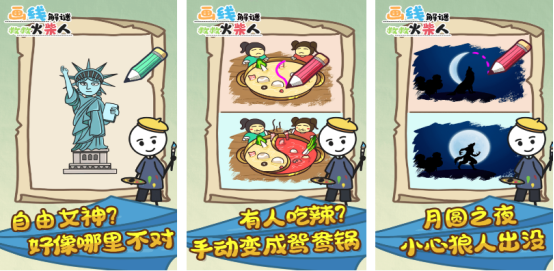简约的火柴人却遭遇到各种艰难险阻,可能会被困在敌人的阵营中,也有可能在月圆之夜时会有狼人的出没等等,主要的规则和要求特别简单,手持一根铅笔,在闯关时,按照具体的要求完成划线,通过一笔连线的方式,成功解救火柴人突破重围。逐渐闯关时,锻炼了大家的反应能力和逻辑推理能力。