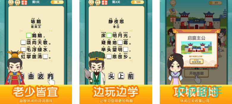 该游戏围绕古诗词展开,玩家需根据图片、关键词或上下文提示补全诗句。补句过程中要求上下文连贯、语义通顺,因此不仅考察反应力,也依赖一定的文学积累。词库持续更新,保持内容新鲜度,整体营造出浓厚的传统文化氛围,让玩家在游戏中感受古典诗词之美。