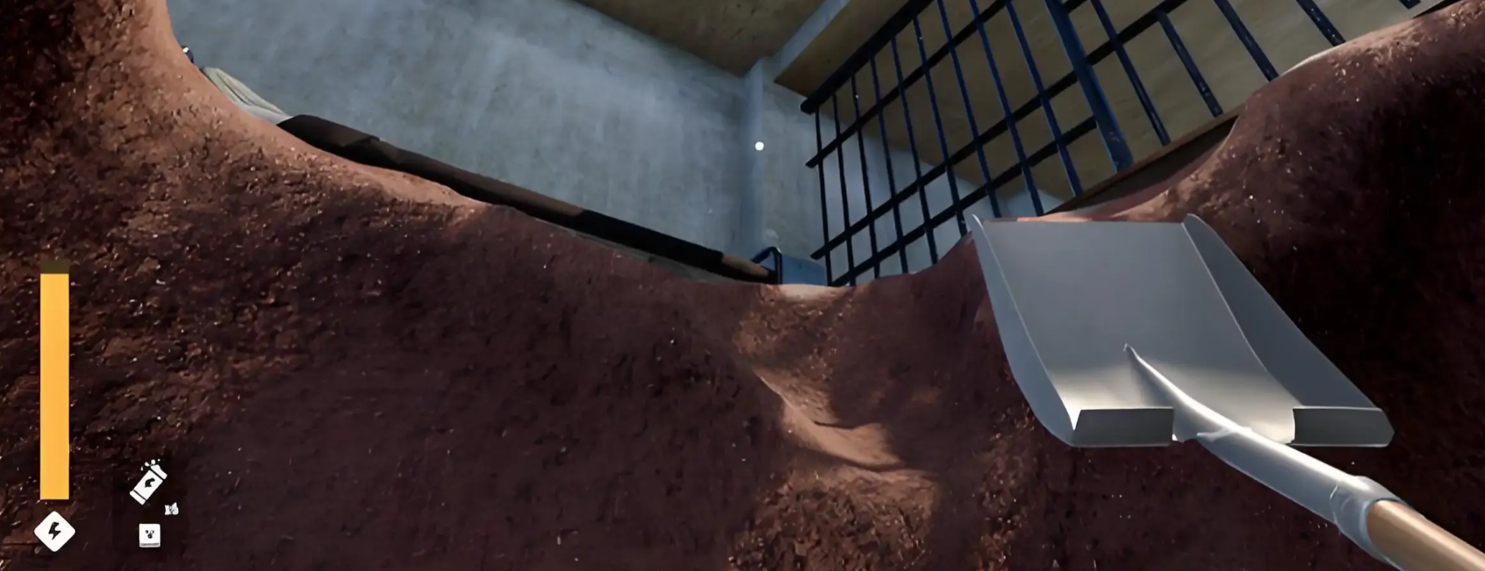 本作的核心玩法围绕着“挖掘逃脱路线”与“隐蔽行动”展开,忠实再现了电影中主角精心策划越狱的过程。玩家将扮演一名被关押的囚犯,从宿舍地毯下寻找可挖掘的空间,并使用初始工具——一把勺子开始秘密作业。每一铲都需要谨慎操作,避免引起看守注意。
