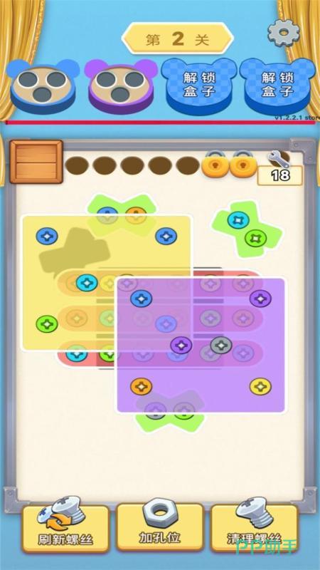 这款名为《螺丝拧到底》的手游以简单直观的操作为核心,玩家需要根据底部容器的颜色提示,点击对应颜色的螺丝进行收集。随着关卡推进,游戏会引入多种辅助道具,提升操作效率的同时也增加了策略性。整体节奏明快,非常适合碎片时间游玩。