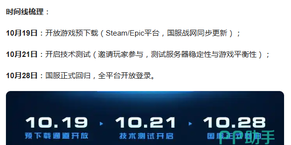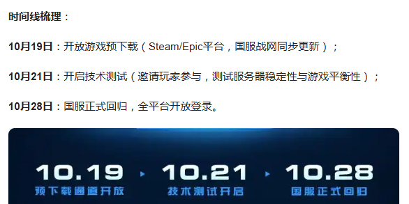现在就告诉大家好消息,官方给出来的正式回归时间在10月28日,届时全平台都开放登录功能。在此之前,我们就可以进行以下步骤,在10月19日的时候,开放预下载功能,提前下好程序包,开服后不耽误游戏时间,在10月21日后,受到邀请的小伙伴,就能提前体验了。