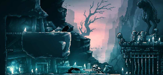 通过以下的链接就可以下载游戏。下载游戏后就可以体验这款游戏的画面,真的比较吸引人。其他的游戏在做像素风时,要么追求复古,要么就是堆细节。但这款游戏是选择暗黑美学,整体的色调就是深灰加上墨蓝。在这一个暗黑的环境中,还有一些细碎的光,例如小女孩手中的蜡烛,还有骑士手中的匕首。更让人喜欢的就是角色的表情,像素块明明很简单,但是却能看出小女孩的紧张。这种在黑暗中找光的画面,其实真的还是比较勾人的。
