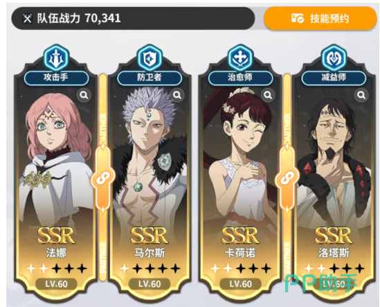 前期阵容不需要纠结,抽卡系统赠送的魔导士凑在一起就是超强的开荒队。具体的搭配自然就是亚斯塔、尤诺、诺艾尔和夏洛特。在队伍中亚斯塔是肉盾担当,自带一个大范围的挑衅技能,可以把敌人的火力全部都引到自己的身上,可以保护队友安心输出。尤诺不仅是一个攻击手,同样也是一个减益师,在输出稳定的同时还可以给敌人挂各种负面效果,可以削弱敌方的战斗力。诺艾尔主打的是防御辅助,可以给队友增加防御buff,让整个队伍的生存能力能大幅度的提升。