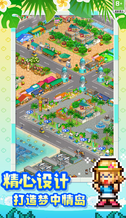 像素风格的游戏,但里面的建筑做得很细致,就算把画面放大好几倍,看起来还是清楚。在游戏里是度假岛的主人,需要好好规划岛上的布局,把这里改成游客愿意来和住得舒服的地方。游戏里不光能规划建筑,还有砍树和盖房子以及钓鱼这些小玩法,这些玩法都是为了帮我们更好地建设度假岛。要是大家一个人忙不过来,还能雇些员工来帮忙做事。