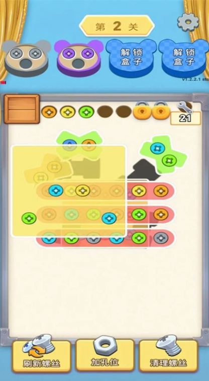 大家在这里主要就是靠拧螺丝和拆木板进行过关,游戏的关卡模式非常多,大家可以随便去选择关卡,每一个关卡都会给大家带来乐趣,扫走大家一身的疲惫。而且还可以锻炼大家的反应和操作,让手变得更加灵活,脑子也转得更快,游戏还有很多实用的道具,大家他们可以帮助大家降低过关的难度。这些道具各有各的妙处,可以从不同方面帮大家过关。有了它们之后,挑战起来会变得更加轻松。