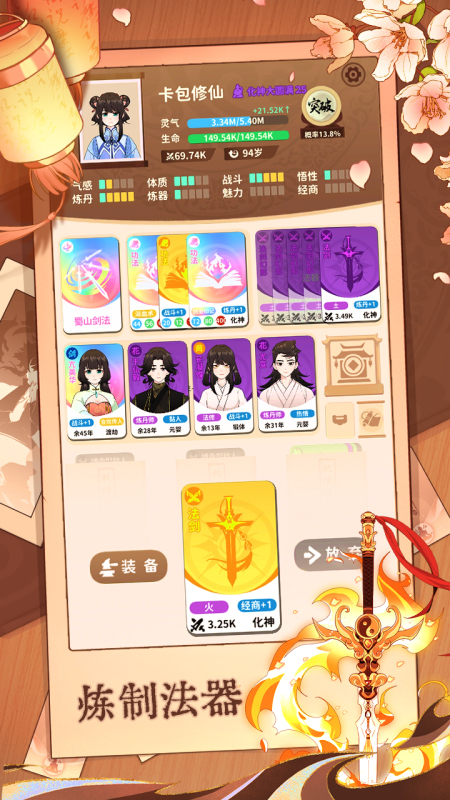 《卡包修仙》一款别具心裁以围绕着卡牌机制设定的修仙模拟的游戏,而且嵌入了更为新意迭出的轮回修仙的机制,更是依托于将肉鸽元素浑然天成的结合,让玩家在不同身份下进行轮回修仙,都能体验到毫不重复的故事以及战斗,在过程中玩家将以抽卡积累属性点数的形式,来创造出主角的修炼风格。