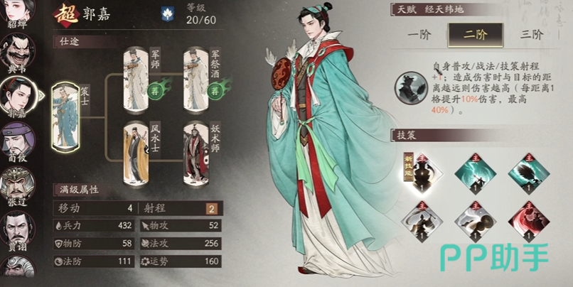 游戏初期资源较为紧缺,因此必须合理规划使用方向,避免平均投入。建议优先集中资源将郭嘉与张辽提升至二阶,作为第一梯队核心培养。郭嘉达到二阶后,普攻射程增加一格,远程输出优势更加明显,战场压制力大幅提升。