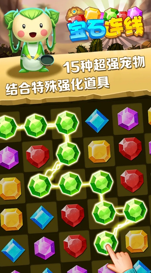 作为一款经典的连线消除游戏,《宝石消消看》支持横、竖、斜三个方向进行宝石连接,操作自由度高,策略性强。当一次消除多个同色宝石时,还能生成特殊道具,触发后带来大范围清除效果,并伴随华丽视觉特效。除了核心的消除玩法外,游戏中还融合了多种益智小游戏内容,丰富了整体的游戏节奏和挑战维度。