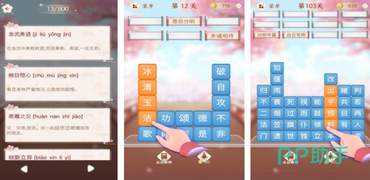 如果想要快速记忆大量的成语,最推荐的就是成语消消闯关,里面会有比较创新的一种玩法,让玩家快速记忆大量的成语,很多成语都会有相同的汉字,游戏里会把这些成语互相交错,玩家需要在空位上填写这些汉字,这样就能同时补全两个成语,关于成语的意思也会在补全之后出现,想要学习成语的玩家不要错过游戏。