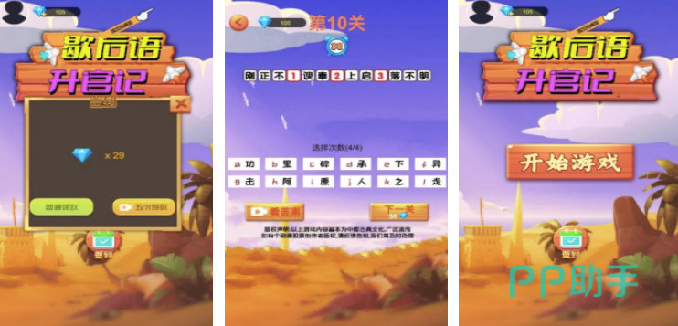 每个玩家对于游戏的需求都不一样,假如比较喜欢的是文字闯关玩法,那就可以进入到歇后语升官记,在这里面会设定大量的歇后语,同时在这些歇后语上还会有很多的空位,玩家需要做的就是在这些空位上填写汉字,只有正确的汉字顺序,才能保证歇后语的连贯,每一次答题完成之后都会进入到全新的关卡,会给出更多题目,通过闯关可以让玩家记忆大家歇后语。