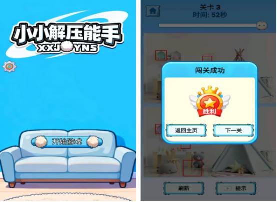 非常解压,以找不同这样简单的玩法为主,对于年龄小的孩子来说,也不需要再玩的时候,有太高的难度挑战,因为只要有很好的眼力,就可以在看上去相似的图片当中,找到不同的以后,来完成关卡的任务,非常有趣。在每个关卡中,由于所出现的图片内容不一样,所以在难度上也是不同的,如果在规定时间内很难完成任务的话,也可利用提示的功能。