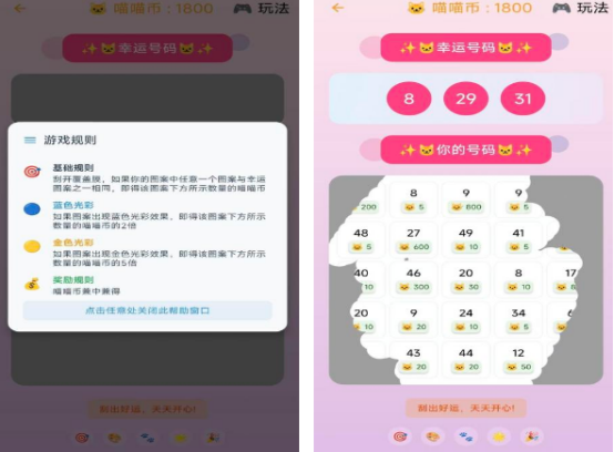 并没有复杂的玩法,只要掌握了规则以后,就能获得奖励,玩家在进入了充满着清晰卡通的世界中以后,会在每次玩的时候显示不一样的幸运号码,通过类似于刮刮乐的这种方式,看看能否找到具备幸运号码的,如果能找到的话,就可根据号码对应的金币奖励,带来不同的奖励。更有机会凭借着超多的方法,获得奖励的超多倍数。