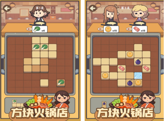 融入了俄罗斯方块的玩法,还可经营火锅店的,在玩的时候,每个积木上面,都可能会出现不一样的食材,要根据顾客需要食材排列的方式,将整行整列的方块消除,就能获得奖励,让自己经营的火锅店拥有更高的收入。还能使用奖励对店铺进行升级,有很多可爱的人物角色以及故事剧情,给大家带来超多的欢乐。