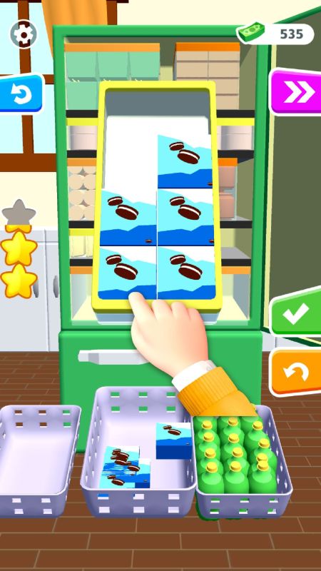 《开心翻不停》游戏首先精巧绝伦的将一个冰箱作为了游乐场地,其次还采用了一种新颖无限的收纳整理的玩法,每一个场景中为我们呈现的冰箱布局,都是具有显著差异的,而且要求我们摆放的物体在大小体积上也形同质异,玩家必须严谨入微的依据冰箱的空间结合物体的大小,去进行更为合情合理的放置。
