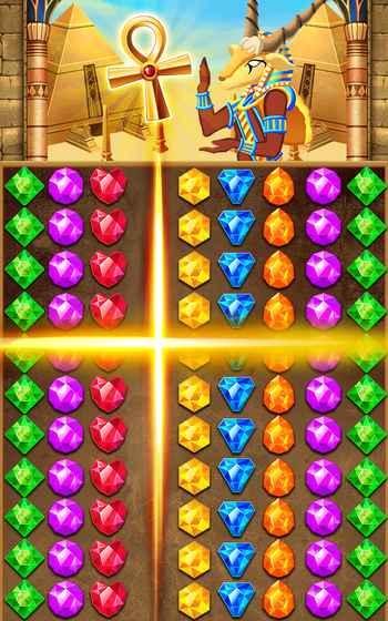 《狂热埃及神秘的法老宝藏》游戏运用了一种至臻级且高度抛光的画质效果,结合着种种象形的神秘符号,把每个人瞬间带入到这个引人入胜的古埃及世界,而且游戏的配乐也运用了具有埃及特色的设计,在这儿你将以一名盗墓者的身份,前往法老的目的去探寻宝藏,通过消除满屏异彩纷呈的钻石,获得前往墓地的钥匙。